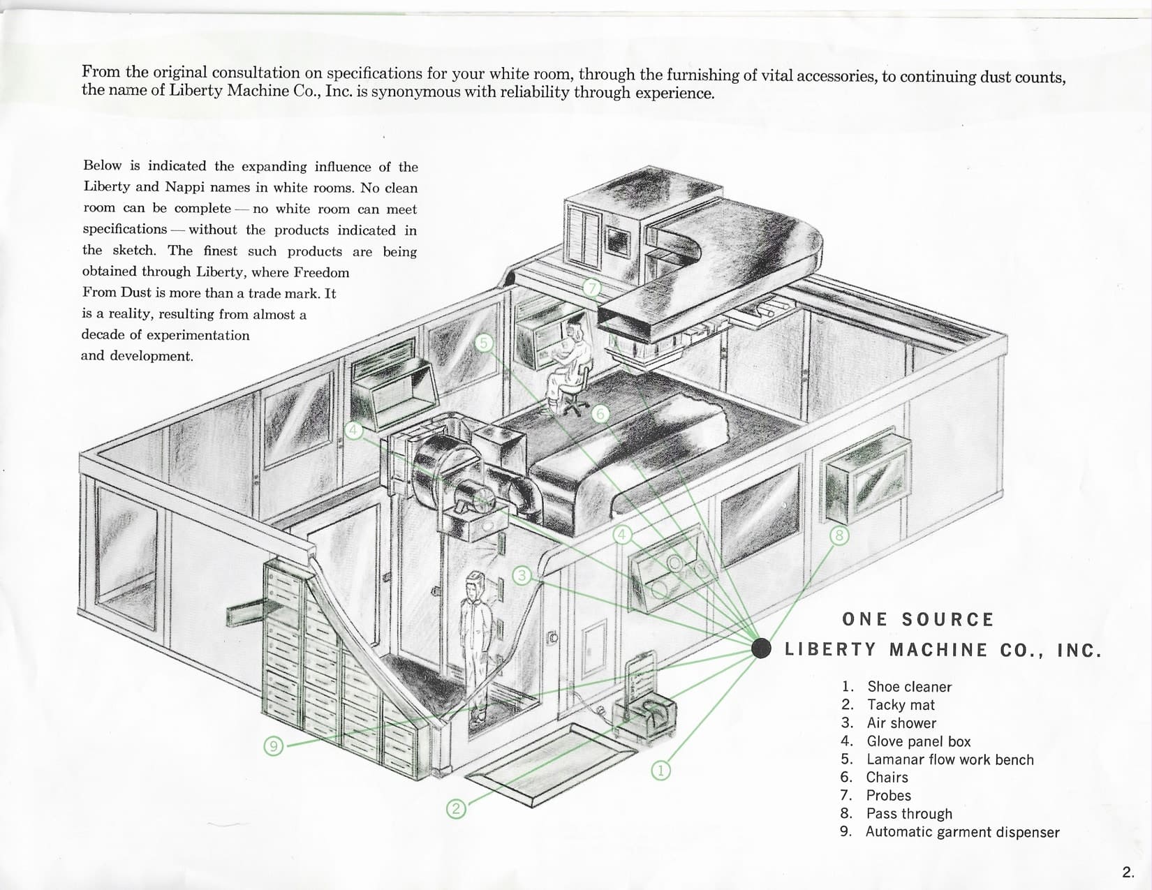As cleanroom technology advanced, John Nappi continued to develop useful and practical products, including Tacky Mats®, Shoe Brush Cleaners, air showers, and laminar flow devices. In the 1960s, he updated the company’s name to Liberty Industries, Inc. to reflect its new mission and diversified specialization.